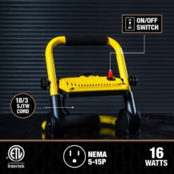 Southwire’s ratcheting LED light includes a smooth, rotating 360-degree head that points light in any direction. It provides the ideal brightness for a variety of indoor and outdoor settings with its 1,500 Lumens. The lightweight and small structure makes for easy transportation to any location as well as quick storage in tighter spaces.