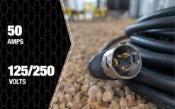 Southwire Extra Duty Outdoor Extension Cord, 50Ft, 8 Gauge, 50 AMP, Twist-to-Lock, Generator Cord, SEOW, Black, 19180008