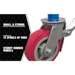 - Two fixed wheels and one locking swivel wheel allow for easy maneuvering