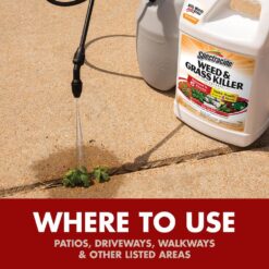 Spectracide Weed & Grass Killer Concentrate2 is formulated for spot treatment of weeds and grasses. Use it on and around patios, walkways and flower beds. This formula is rainproof in 15 minutes-rainfall or watering after 15 minutes won’t wash away effectiveness. Spectracide Weed & Grass Killer Concentrate2 kills down to the root and delivers visible results in as fast as 3 hours. This product kills weeds and grasses as listed, including chickweed, plantain, dandelion, annual bluegrass and clover. Plant new flowers, trees and shrubs in the treated area after just 1 day. When used as directed, Spectracide Weed & Grass Killer Concentrate2 works the first time, every time! For best results, apply during warm, sunny weather when the temperature is over 60 degrees. Mix with water and apply with a tank sprayer at the rates directed on the product label. Completely cover the leaves of the target vegetation. Protect desirable plants with a piece of plastic or cardboard – if desirable plants are accidentally sprayed, wash with water immediately. Do not mow, cut or otherwise disturb treated vegetation for at least seven days following application. Do not use on or around edible feed or food crops. Guaranteed results or your money back – see product label for details.