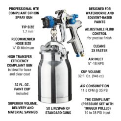 SPECTRUMÂ 32 oz. Professional HTE Compliant Siphon Air Spray Gun
