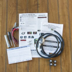 - Comes with separate adapters for LPG and natural gas, a DC connector wires for charging 12 Volt automotive-type batteries, a spark plug wrench, a screwdriver, and a 5 ft. regulator hose kit
