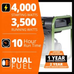 Sportsman 806564 4,000-Watt/3,500-Watt Recoil Start Dual Fuel Powered Portable Generator with Protective Cover and Wheel Kit