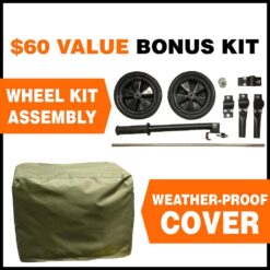 The Sportsman 4,000-Watt/3,250-Watt Propane Gas Powered Portable Generator offers flexibility and power. Expect high-performance for a household appliance or job site. At a 4,000 peak surge-Watt and 3,500 rated running-Watt, this generator can operate many household appliances and power tools. 4 120-Volt outlets, 1 120-Volt RV outlet and 1 12-Volt DC outlet offers lots of charging power outdoors or indoors. You can power the Sportsman with both liquid propane gas and regular gasoline for additional flexibility. Comes with the Generator Mobility Wheel Kit and Weather Proof Cover: No more heavy lifting, make your 4000-Watt Sportsman Generator mobile and easier to move with the Sportsman Series Generator Mobility Kit. The Generator Wheel Kit Assembly includes 2 7 in. wheels with center axle, a handle for pulling and steering and 2 stabilizer feet. The Sportsman Series Generator Covers are the best way to protect your valuable investment. These Generator Covers are constructed of 600D high density polyester fabric that won’t stretch and shrink in hot or cold temperatures and helps keep dust and dirt off the generator during storage. An elastic grip along the bottom provides a secure fit and helps to protect from dust, UV rays, weather and more.