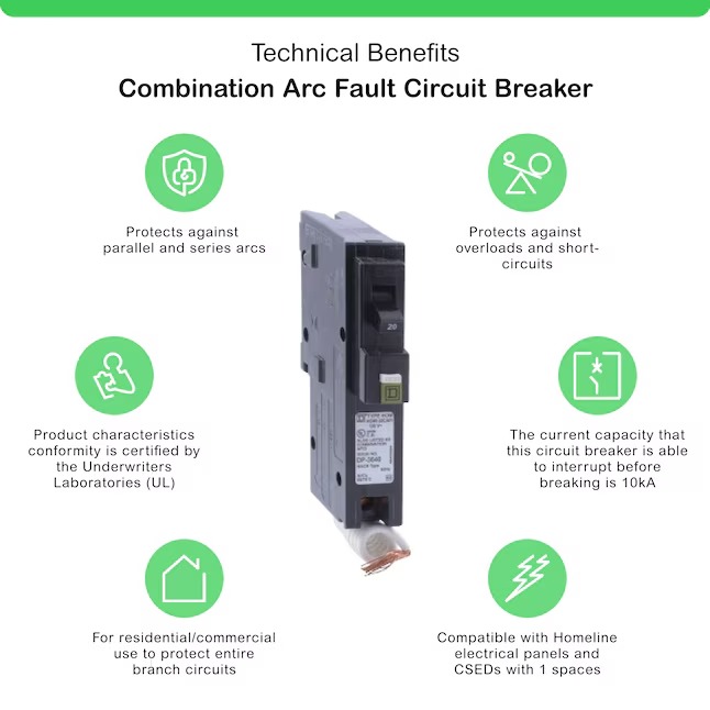 - Square D Homeline 20 Amp single-pole combination AFCI circuit breaker