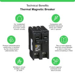 Use this Homeline 125 Amp Two-Pole Circuit Breaker to protect circuitry in Square D Homeline load centers and CSEDs from overloads or short circuits. This breaker is designed with a thermal-magnetic tripping mechanism for excellent detection of both short surges and long-term over currents. It is rated for 120/240 VAC and has a 10K AIR.