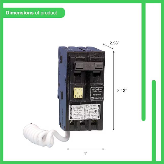 - Square D Homeline 50 Amp two-pole GFCI circuit breaker