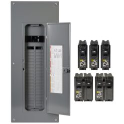 - Includes (3) HOM120 Homeline 20 Amp single-pole circuit breakers, (2) HOM230 Homeline 30 Amp double-pole circuit breakers and a combination flush/surface indoor cover