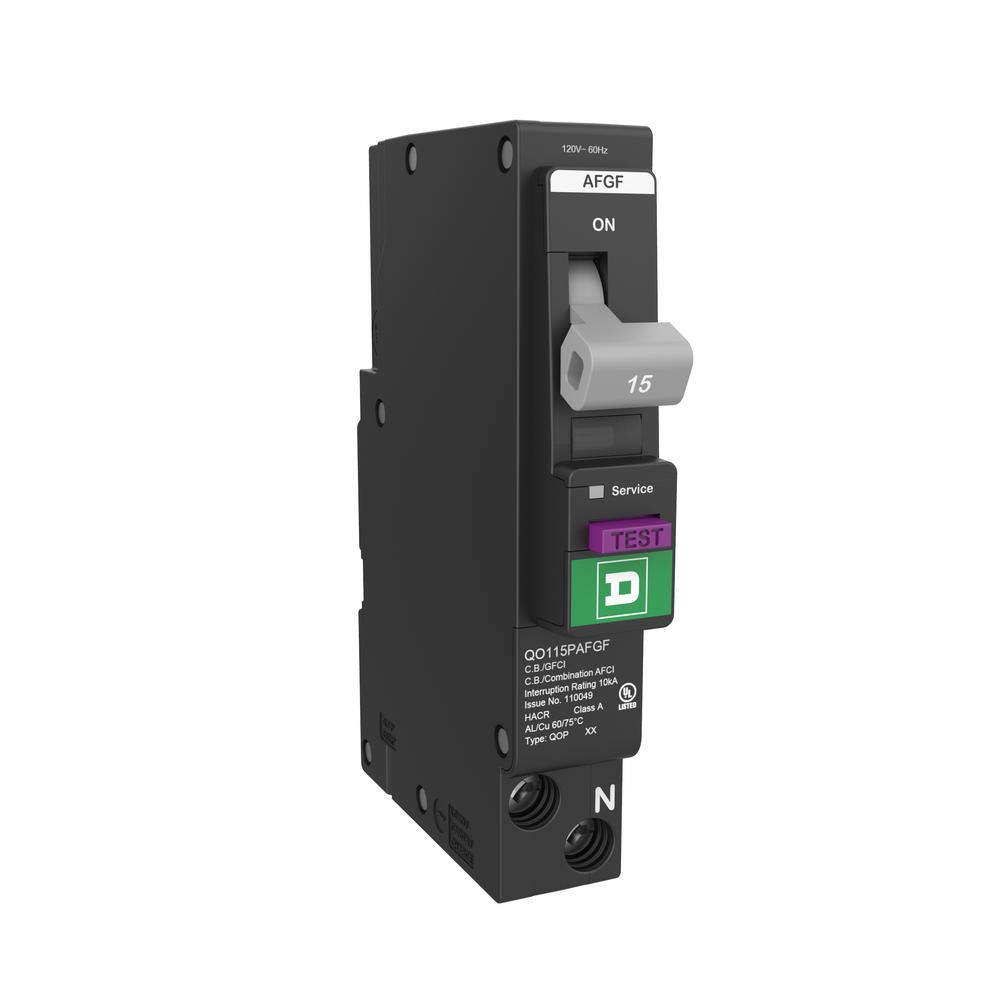 Square D QO115PAFGFC QO 15 Amp 120-Volt Single-Pole Plug-On Neutral Dual Function (CAFCI and GFCI) Circuit Breaker