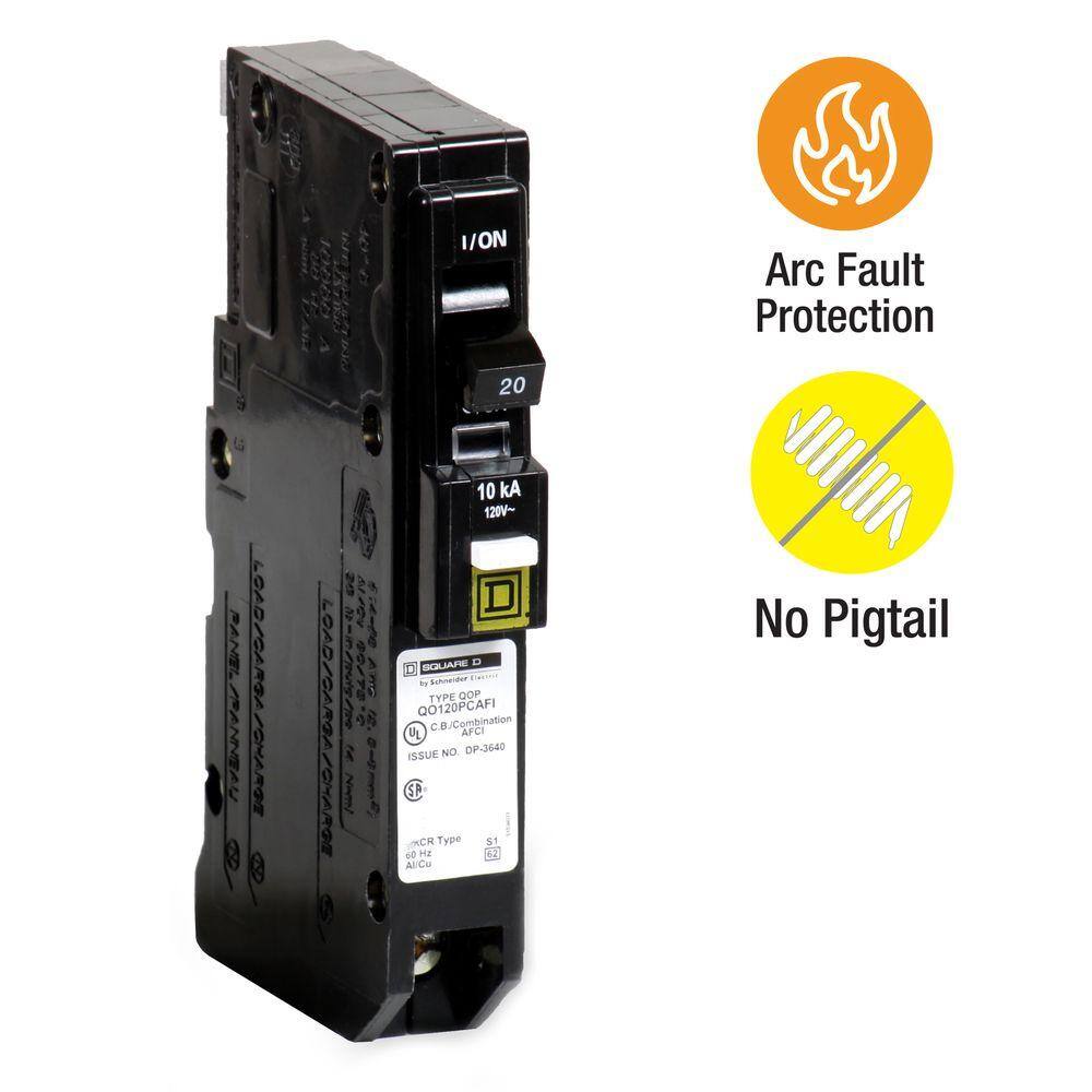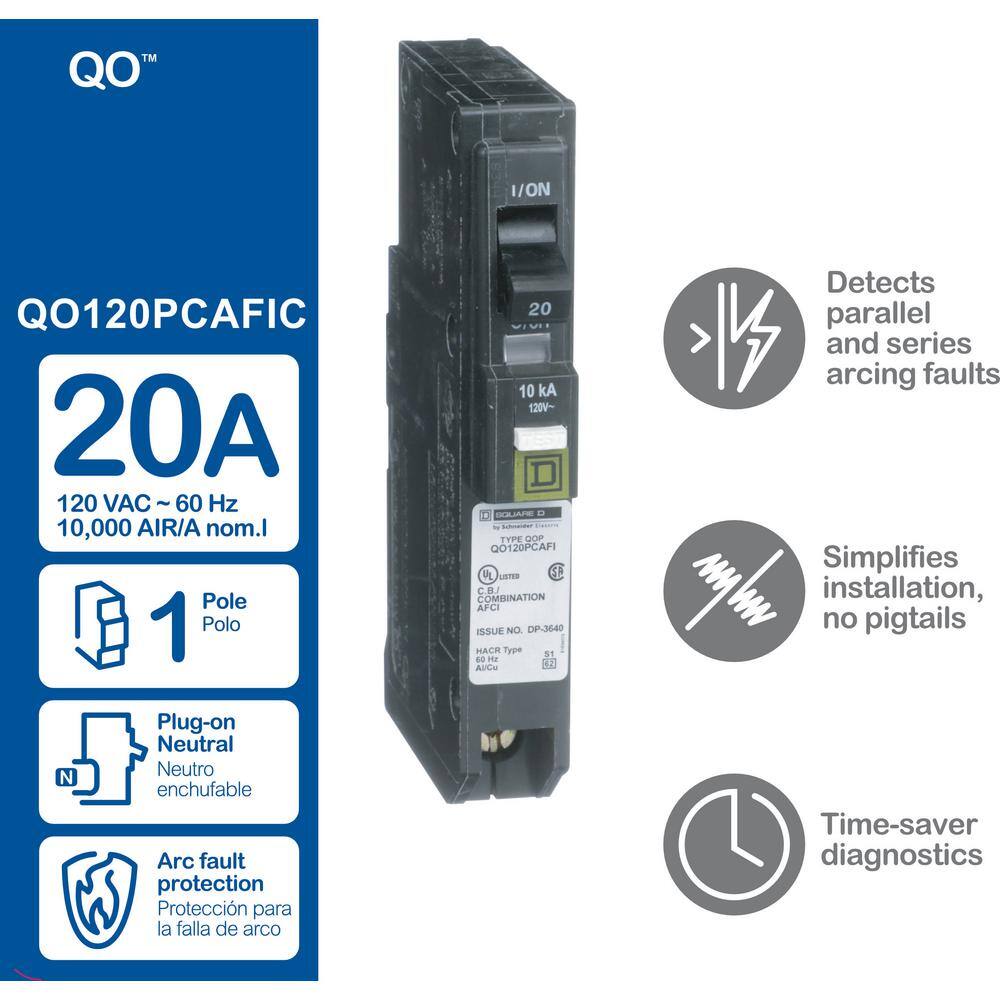 - Square D QO 20 Amp single-pole plug-on-neutral combination AFCI circuit breaker