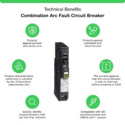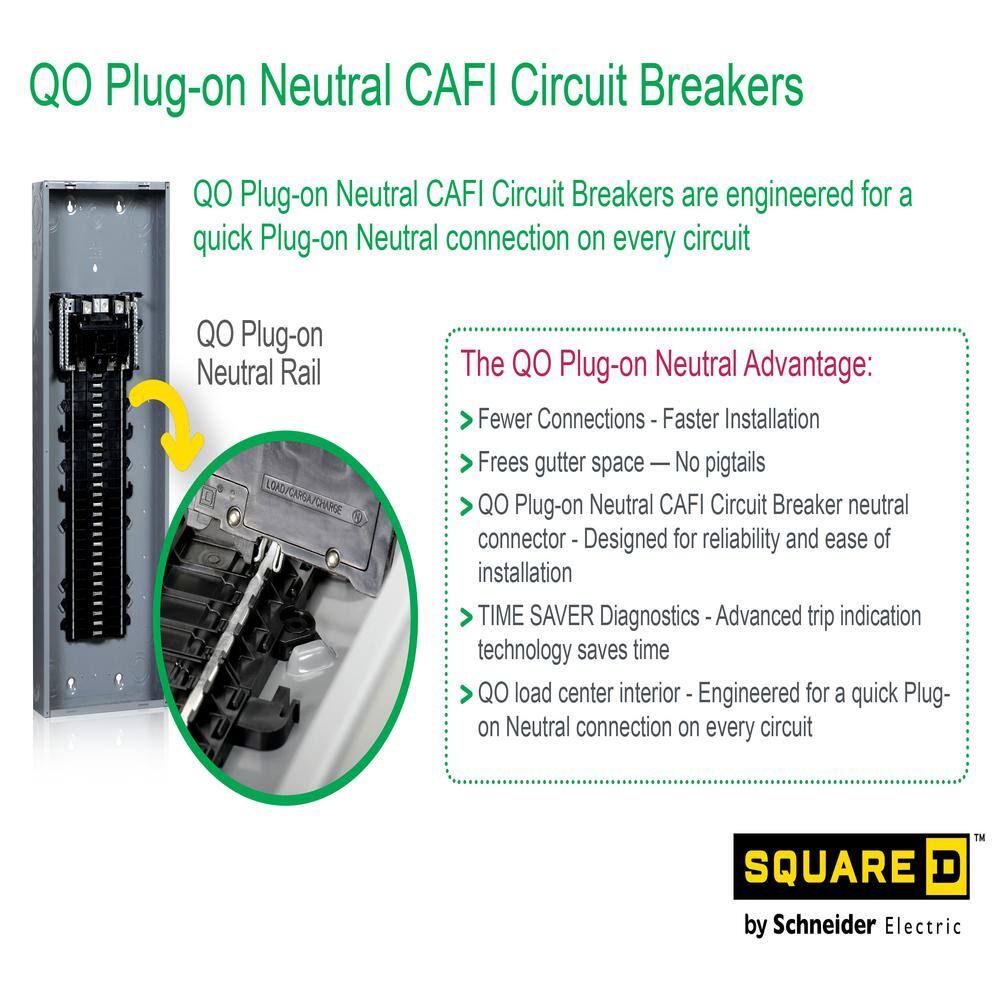 The Square D by Schneider Electric QO 20 Amp Single-Pole Plug-on Neutral Combination Arc-Fault Circuit Interrupting (CAFCI) Circuit Breaker is for use to help protect your wires from arcing faults and is intended for overload and short-circuits protection of your electrical system. Designed for reliability, the QO Plug-on Neutral CAFI Circuit Breaker connects directly to the neutral bar, providing a time and labor-saving installation. QO Plug-on Neutral provides several advantages and among them is fewer connections which lead to faster installation and an innovative neutral jaw eliminates pigtails which in turn frees gutter space. Now standard in all Square D brand CAFCI circuit breakers, Time-Saver Diagnostics provide advanced trip indication technology, helping identify the type of fault that has occurred faster. Time-Saver Diagnostics helps take away the guess work and provides diagnostic assistance by identifying the type of fault that last occurred. It saves money by reducing troubleshooting time, simple to use, accurate and reliable. QO circuit breakers have features no other manufacturer can offer. These types of quality, industry exclusive products keep the Square D brand ahead of the competition and are builders’ and electrical contractors’ first choice in electrical protection. This QO CAFCI breaker is compatible with Square D’s QO Plug-On Neutral breaker boxes ONLY.