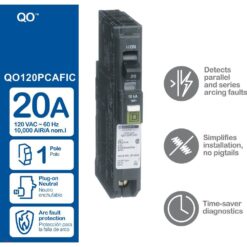 Square D QO120PCAFIC QO 20 Amp Single-Pole Plug-On Neutral Combination Arc Fault Circuit Breaker