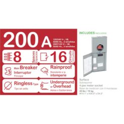 - The Square D 200 Amp 8-Space 16-Circuit Combination Meter Socket and Main Breaker Load Center is suitable for use as a combination service entrance device (CSED) and has feed-through lugs