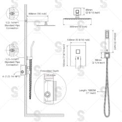 | Included Components | ‎Handheld Shower Head, 12 inches Rain Shower Head, Asjustable Shower Bracket, Wall-mounted Shower Arm and Shower Hose, Rough-in Valve and Trims |