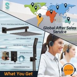 - You Will Get: A 10-inch Rain Shower Head (304 Stainless Steel), an L-Style Hand Shower (Solid Brass), a 16-inch wall-mounted shower arm (304 Stainless Steel), Rough-in Valve and Trims (Solid Brass), a Shower Bracket (Solid Brass), a 71-inch Shower Hose (304 Stainless Steel), and all the accessories required for installation.