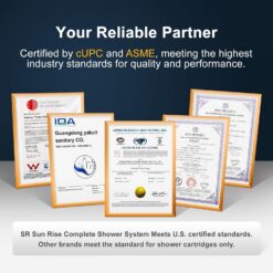 - Install with Confidence: SR SUN RISE Shower System has cUPC Certification and compliance with the following standard(s): ASME A112.18.1-2018/CSA B125.1-18. Designed for use with standard 1/2″ U.S. plumbing connections.