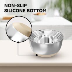 Stainless Steel Mixing Bowls with Airtight Lids Set of 5, Nesting Mixing Bowls for Kitchen, Khaki, Dishwasher Safe, Non-Slip, Multi-Purpose for Cooking, Baking, Prepping & Food Storage