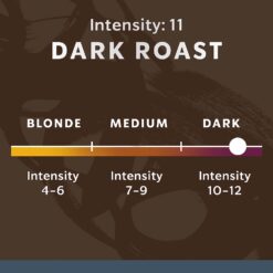 - Espresso Roast is intense, caramelly sweet and perfect with steamed milk. The intensity level of this coffee is 11, a dark roast