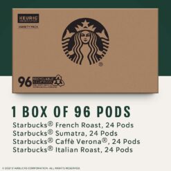- PREMIUM COFFEE IN A K-CUP—Starbucks delivers exceptional coffee cup after cup with this variety pack of dark roast coffee—96 total K-Cup pods for Keurig brewers