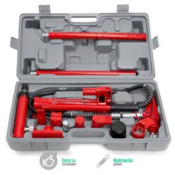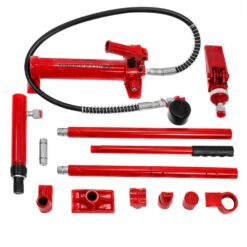 This Portable Hydraulic Jack Tool Kit is the ideal tool for a variety of auto body, frame repair and construction jobs. With a loaded rate capacity of 4-Ton, this heavy-duty hydraulic tool kit can be used for lifting, pushing, pulling, bending, aligning, straightening and spreading with ease. The hydraulic equipment kit includes a full range of additional accessories and attachments that can be used to pop dents out from metal doors and panels, from even the smallest and tightest areas.