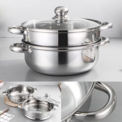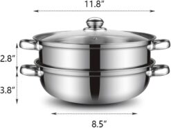 Steamer Pot for Cooking 11.9 inch Steamer Pot Upgrade Capacity, 2-tier Multipurpose 18/8 Stainless Steel Steam Pot Cookware with Lid for Vegetable, Dumpling, Stock, Sauce, Food