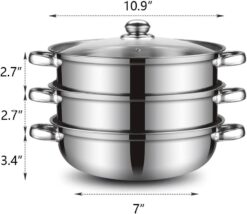 Steamer Pot for Cooking 11 inch Steamer Pot, 3-tier Multipurpose 18/8 Stainless Steel Steam Pot Cookware with Lid for Vegetable, Dumpling, Stock, Sauce, Food