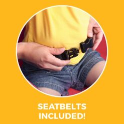 - A perfect height for little ones to climb in, the kids’ wagon includes safety belts and push-lever wagon door for a safe ride. Buckle up, latch the door, and get going