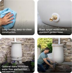 - OPTIONAL ELEVATION: Compatible stand (sold separately) improves water pressure and functionality, link multiple rain barrels together for increased storage and overflow management