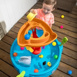 - Water table tower features the signature Step2 rain shower splash tray for a real rainfall sound