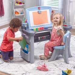 - Features an adjustable work surface board; fold down for a desk, or lift up for an easel