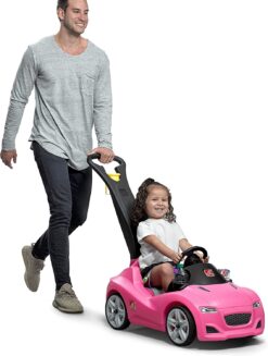 Step2 Whisper Ride Toddler Push Car, Pink – Ride On Toy with Included Seat Belt, Easy Storage and Transport, Steering Wheel for Pretend Play – Push Toy Car Makes a Great Stroller Alternative