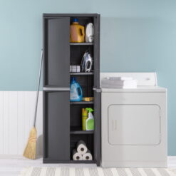 Organize with ease! The durability, modularity, and simplicity of Sterilite’s 4 Shelf Cabinet makes it the ideal solution for basements, attics and garages. The trend forward Flat Gray color is both sleek and refined and complements a variety of living areas, offering additional storage options for pantries, utility /laundry areas, dorms and mudrooms.