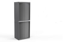 Heavy duty plastic will not dent, chip, peel or rust, ideal in a challenging environment. The Cabinet assembles easily in minutes without the use of tools, simplifying your organizational project. Create a custom storage solution with other Sterilite Hardware items, such as the 5 Shelf Shelving Unit, 4 Shelf Shelving Unit, and 4 Drawer Unit. The overall assembled dimensions of this item are 69 3/8″ H x 25 5/8″ W x 18 7/8″ D.