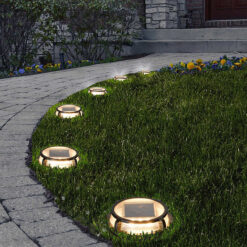 Illuminate your outdoor areas with these versatile weather resistant multi-surface lights. These energy-efficient multi-surface lights install in minutes and use the power of the sun to light the night. Each light features a 12-Lumen light source with 360 degree lighting. Each light runs on 1 AA Ni-Mh rechargeable battery (included). Set includes 4 path lights with ground stakes and mounting screws