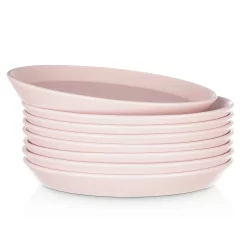 - SERVICE FOR 8 – The Serenity stoneware dish set includes 8 large round 10″ dinner plates, 8 smaller 7.5″ appetizer or salad plates, 8 soup bowls, and 8 12-oz. cups, making it perfect for dining with family and friends