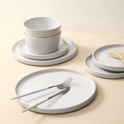 This dinnerware collection features a lipped rim design on each plates and bowls. These fashionable dishes bring an earthy and organic feel to your set, while also being simple and basic enough for everyday dining. Simply pair with your favorite cutlery and you are ready to eat!