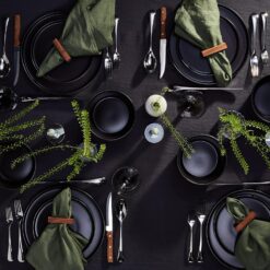 - 16 Piece dinnerware set – stoneware is hip, cool and trendy. Especially in a fashionable Black Matte. These sets of dishes make a statement.