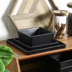 Stone Lain Grace Square Stoneware Dinnerware Set, 12 Piece Service For 4, Black