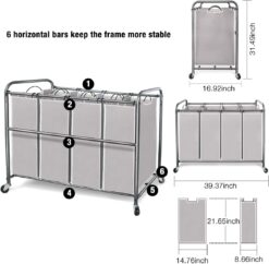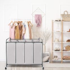 STORAGE MANIAC Laundry Sorter 4 Section, Laundry Hamper with Wheels, Laundry Basket Sorter, Laundry Separator Hamper, Laundry Divider Hamper, 4 Bag Laundry Hamper with Wheels and Removable Bags, Gray