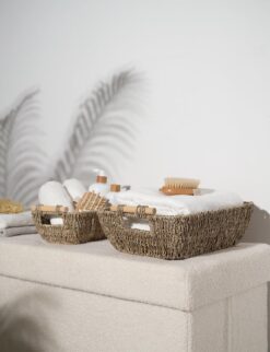 StorageWorks Hand-Woven Large Storage Baskets with Wooden Handles, Seagrass Wicker Baskets for Organizing, 2-Pack