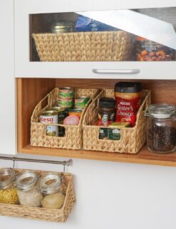 - Made from 100% natural, earth-friendly, renewable water hyacinth, the kitchen storage baskets for pantry help reduce our impact on the environment.