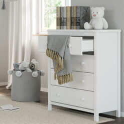- MODERN, STYLISH 4-DRAWER DRESSER: This 4-drawer dresser offers families a modern storage solution that is easy to match with any style of nursery or kids bedroom