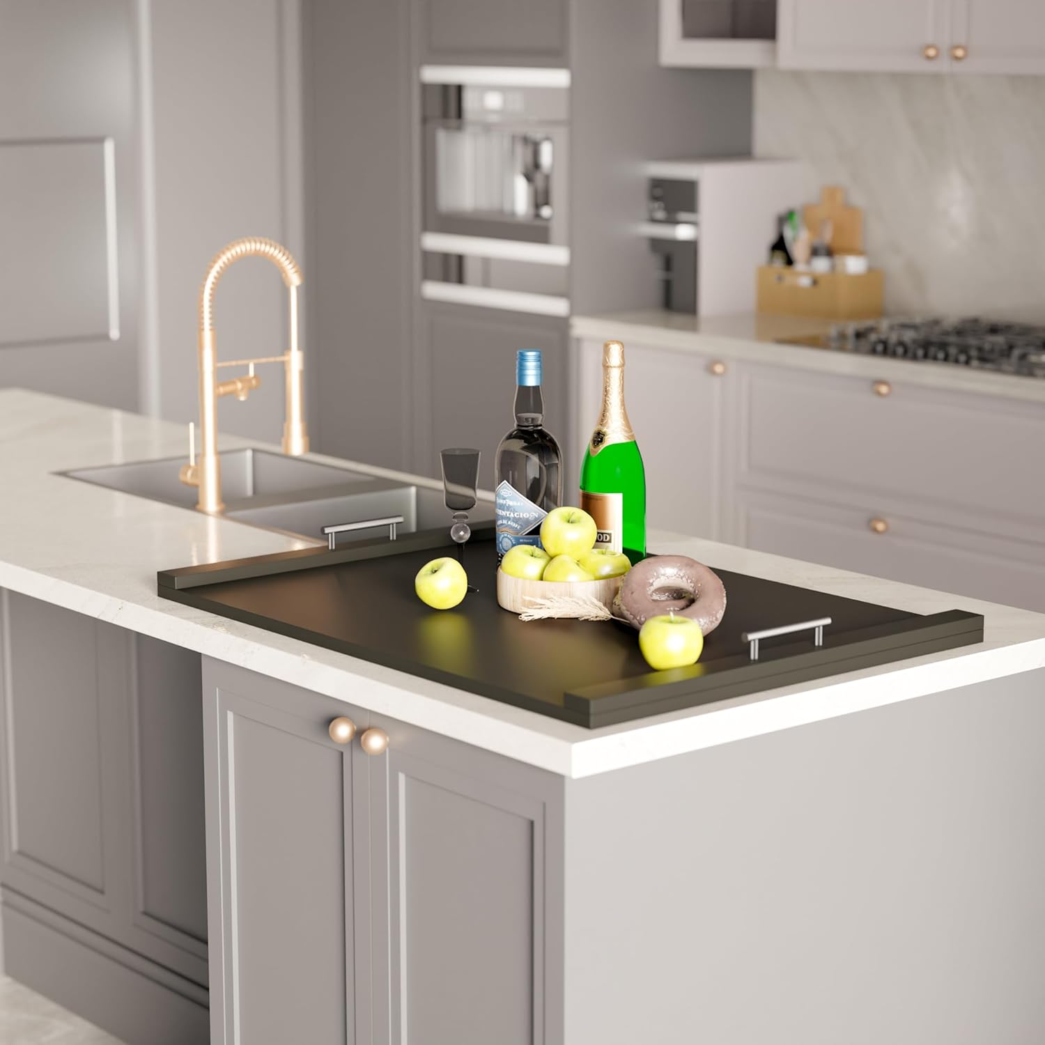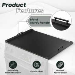 Stove Top Covers for Electric Stove – Acacia Wood Noodle Board for Gas Stovetop – Stove Top Covers for Gas Burners – Wooden Kitchen Sink Cover for Counter Space & Decorative Tray (Black)