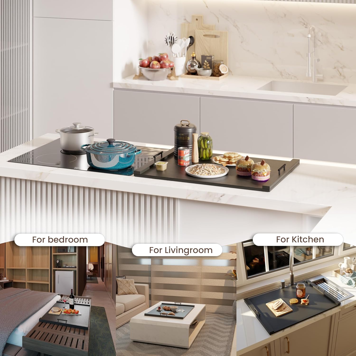 - Multi-Functional: In addition to protecting your stovetop, it serves as a spacious cutting board for food preparation, making it ideal for chopping and slicing. It can also be used as a serving tray for snacks or meals and even as a convenient breakfast tray for those cozy mornings in bed. Plus, it’s perfect for creating beautiful charcuterie boards, butcher’s blocks when you’re entertaining guests.