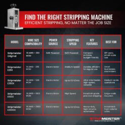- DRILL-POWERED WIRE STRIPPING: Got a hand drill at home? Pair it with the StripMeister original wire stripping machine, and you’ve got a powerful tool that can handle various types of wires, from 18 gauge to 250 MCM, including braided (stranded) wire. This wire stripper is your partner for practical and economical wire recycling.