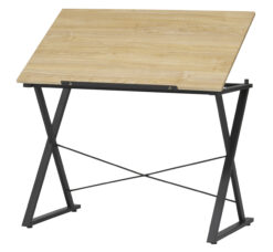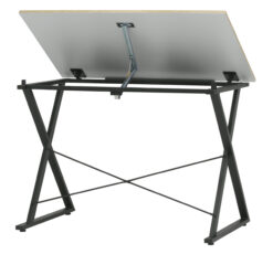 The Axiom Drawing Table by Studio Designs offers an affordable tilting top desk for new artists. looking Like other drafting tables, the top adjusts from flat to a 40-degree angle. The 24″ Pencil Ledge keeps you pencils on the table top while tilted. The large 42″ wide x 24″ deep top offers plenty of space for your projects. This simple table can easily be upgraded by adding an art supply storage tray or a clamp lamp also available from Studio Designs. Keep it simple or customize it, either way this table provides a stylish option for your drawing needs.