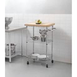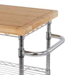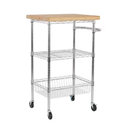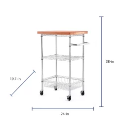 Style Selections  Chrome Steel Base with Wood Top Rolling Kitchen Cart (24-in x 19.7-in x 38-in)