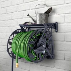 Winding your garden hose can be a frustrating process – cumbersome, heavy, tangled and messy. Style Selections hose reels eliminate this frustration while bringing style and function to your outdoor space. Our hose reels easily and neatly wind hoses of all sizes up to 200-feet. They are constructed of strong materials that withstand the outdoor elements. Style Selections hose reels also feature on-trend designs with colors that complement your outdoor landscape. Next time make rolling up your garden hose a hassle-free experience with a Style Selections hose reel.