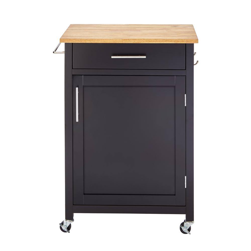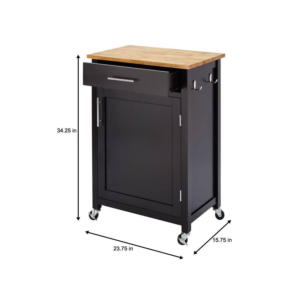 StyleWell SK17787Cr2-BBB Glenville Small Black Rolling Kitchen Cart with Butcher Block Top and Single-Drawer Storage (24 in. W )