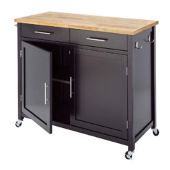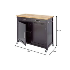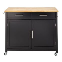 StyleWell SK17787Cr2-EBB Glenville Black Rolling Kitchen Cart with Butcher Block Top and Double-Drawer Storage (42 in. W)